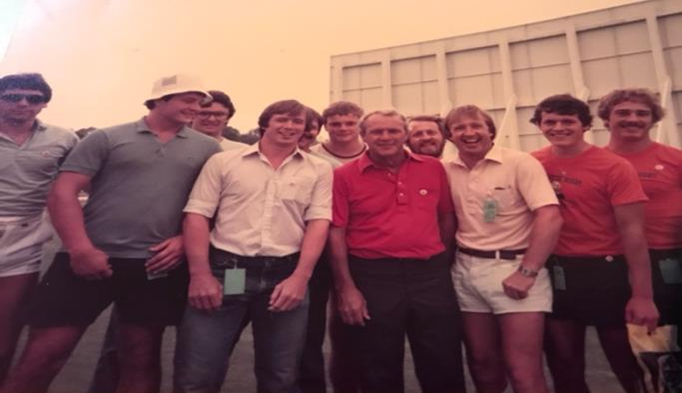 At this point, Arnold came over to me and asked who we were. I told him it was a group of students from England on a rugby tour. Crowds and security were not what they are today, and he walked down the fairway on his side of the rope barrier separating the spectators from the players and fairway, all the while chatting to me, asking questions about rugby. He played his second shot and carried on the conversation.